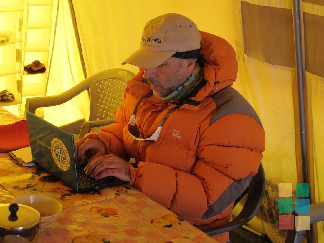 Día de descanso. Tiempo para recuperarse luego del largo tirón de ayer, aunque las condiciones de vida en Campo 2 no sean las más favorables. Una tragicómica descripción de lo que ocurre al cepillarse los dientes y al ir al "baño" deja en claro lo difícil que resultan esas acciones.