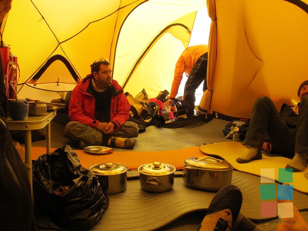 En Campo 2 desaparecen las comodidades del Campo Base. Dormir no resulta fácil y las temperaturas siguen bajando. El mejor remedio para casi todo es la hidratación, aunque a razón de siete litros por día ya empieza a sentirse el hartazgo del té, el mate cosido y el jugo. Unas palabras al pie de Sagarmatha.