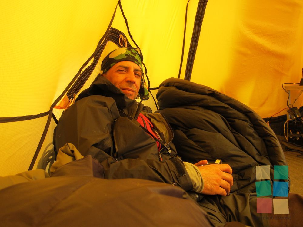 Día de descanso. Tiempo para recuperarse luego del largo tirón de ayer, aunque las condiciones de vida en Campo 2 no sean las más favorables. Una tragicómica descripción de lo que ocurre al cepillarse los dientes y al ir al "baño" deja en claro lo difícil que resultan esas acciones.