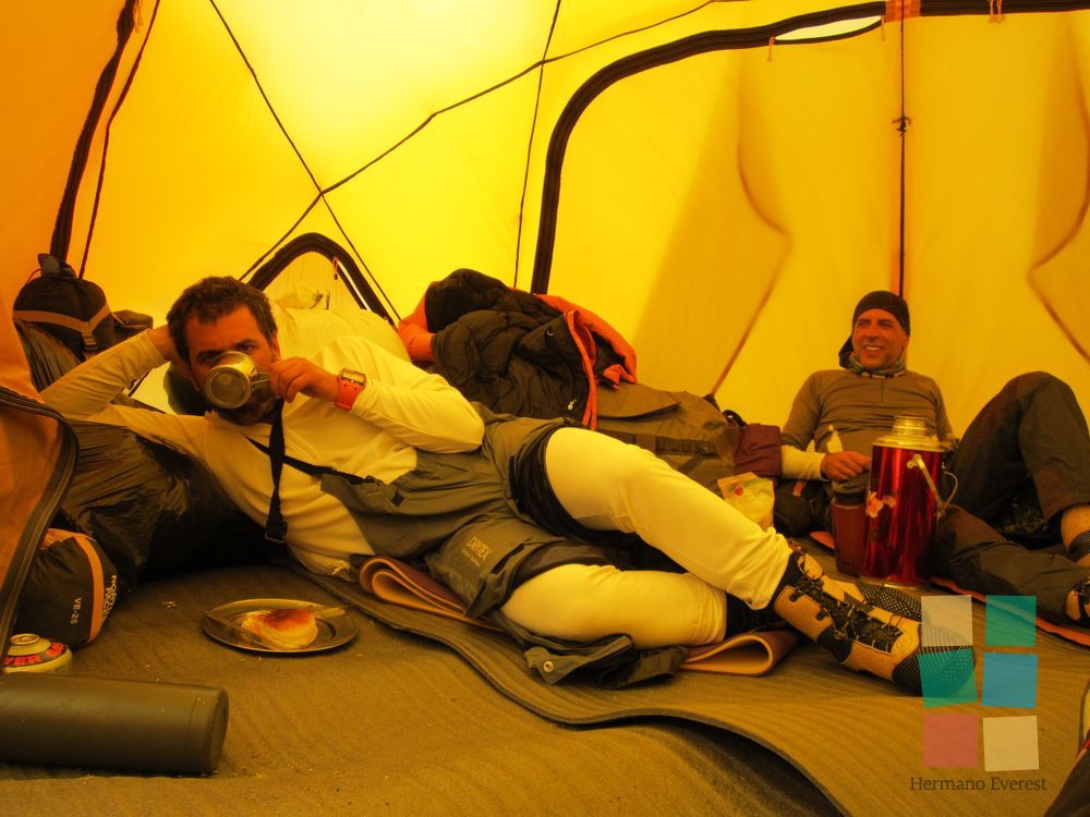 En Campo 2 desaparecen las comodidades del Campo Base. Dormir no resulta fácil y las temperaturas siguen bajando. El mejor remedio para casi todo es la hidratación, aunque a razón de siete litros por día ya empieza a sentirse el hartazgo del té, el mate cosido y el jugo. Unas palabras al pie de Sagarmatha.
