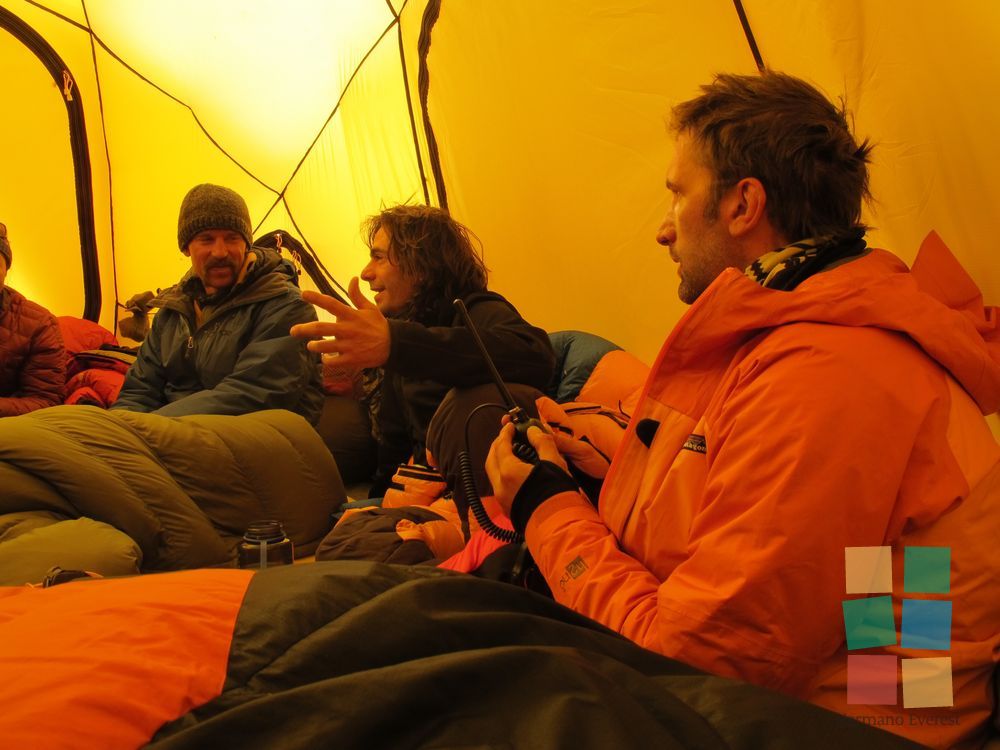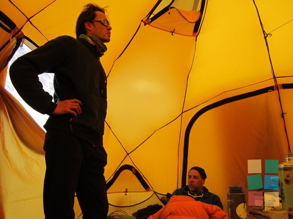 Día de descanso. Tiempo para recuperarse luego del largo tirón de ayer, aunque las condiciones de vida en Campo 2 no sean las más favorables. Una tragicómica descripción de lo que ocurre al cepillarse los dientes y al ir al "baño" deja en claro lo difícil que resultan esas acciones.