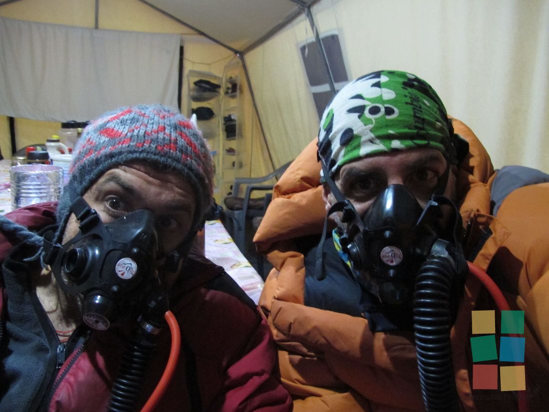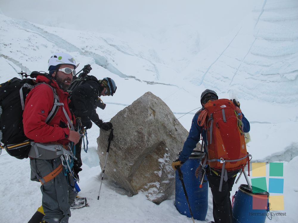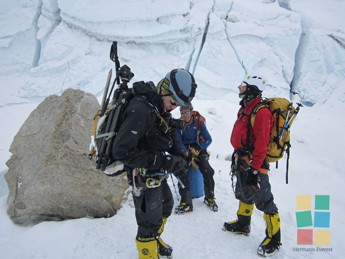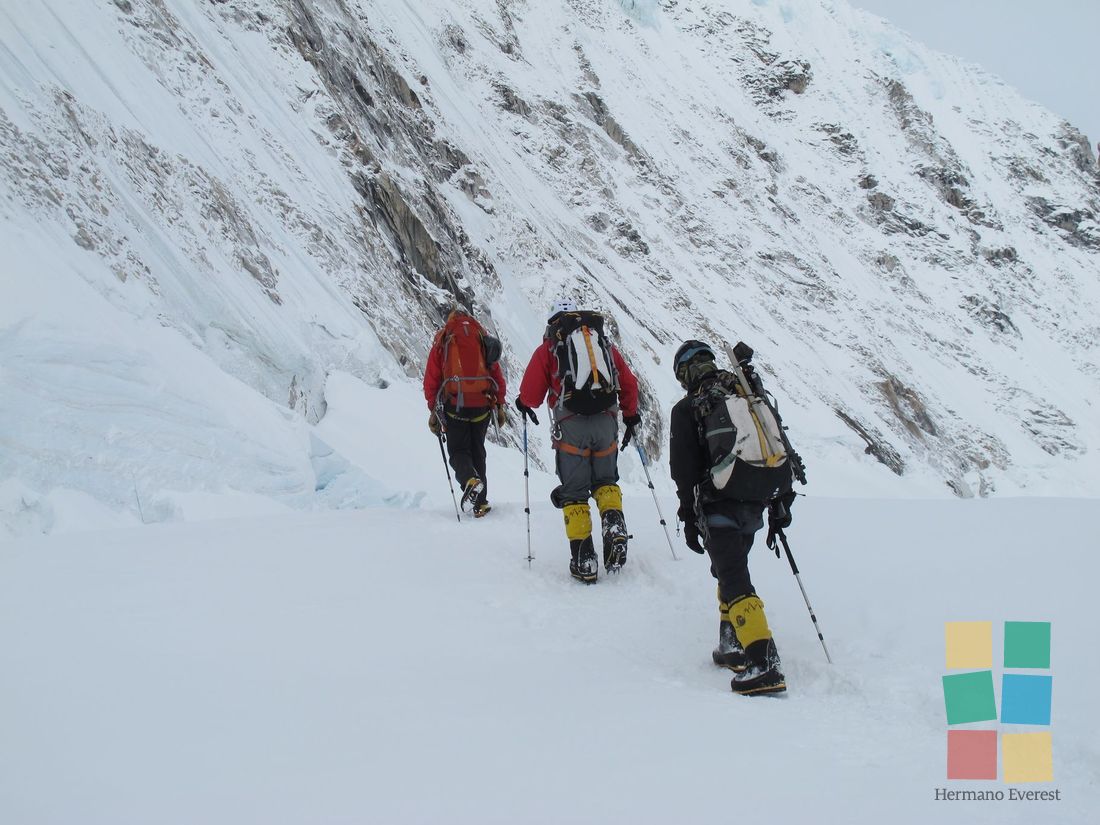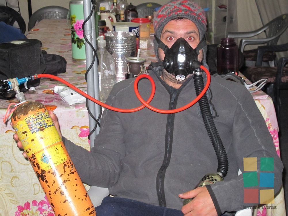 Hoy hay que llegar a Campo 3 y dormir allí, en una carpa apenas sujeta sobre la Cara del Lhotse, con su pendiente de más de mil metros de puro hielo. ¿Para quién escribe Fer? Cinco en una carpa para tres: la tarde discurrió entre chistes, risas y las típicas e irreproducibles charlas de varones. El equipo de oxígeno se torna necesario.