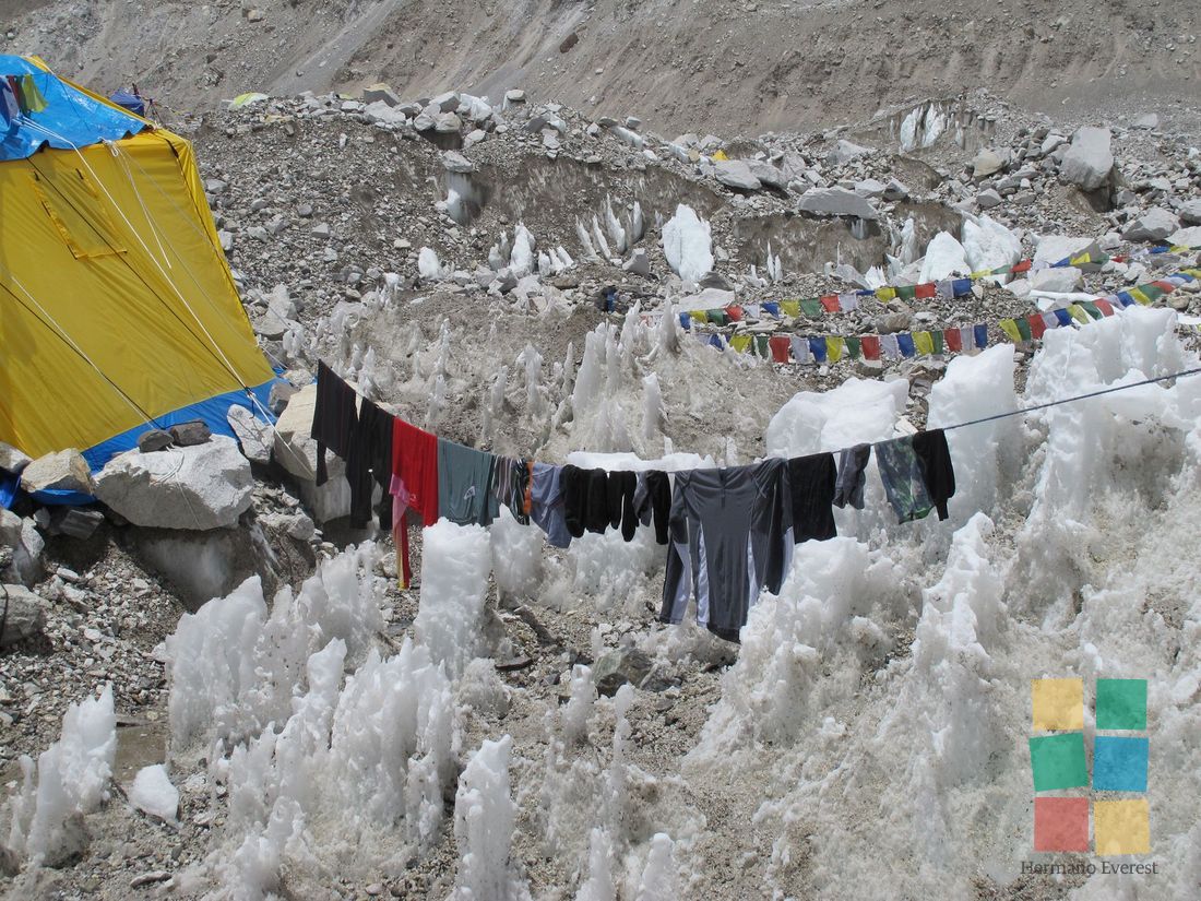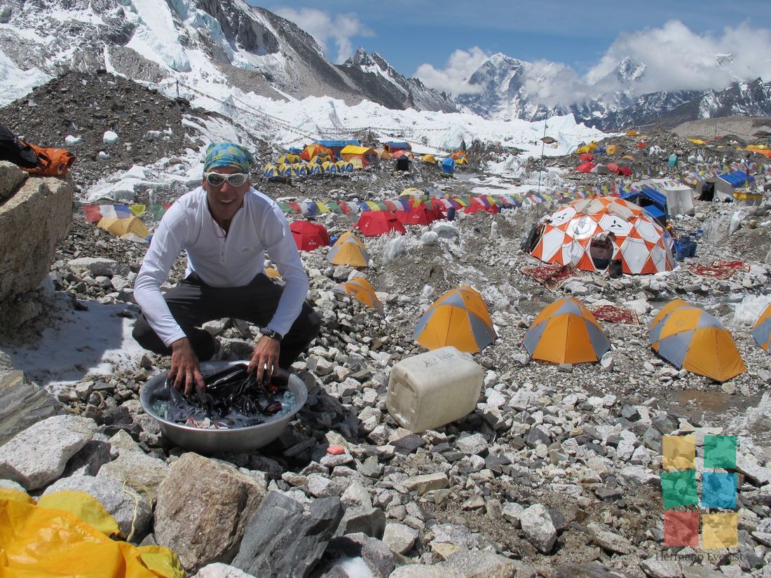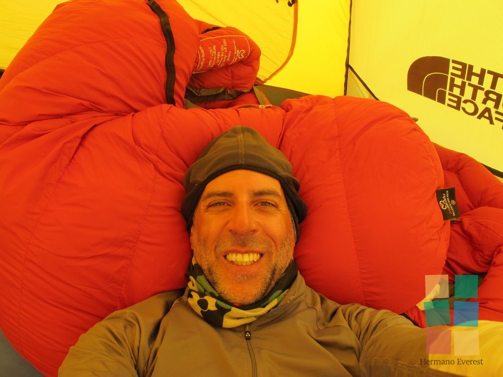 Día de descanso. Tiempo para recuperarse luego del largo tirón de ayer, aunque las condiciones de vida en Campo 2 no sean las más favorables. Una tragicómica descripción de lo que ocurre al cepillarse los dientes y al ir al "baño" deja en claro lo difícil que resultan esas acciones.