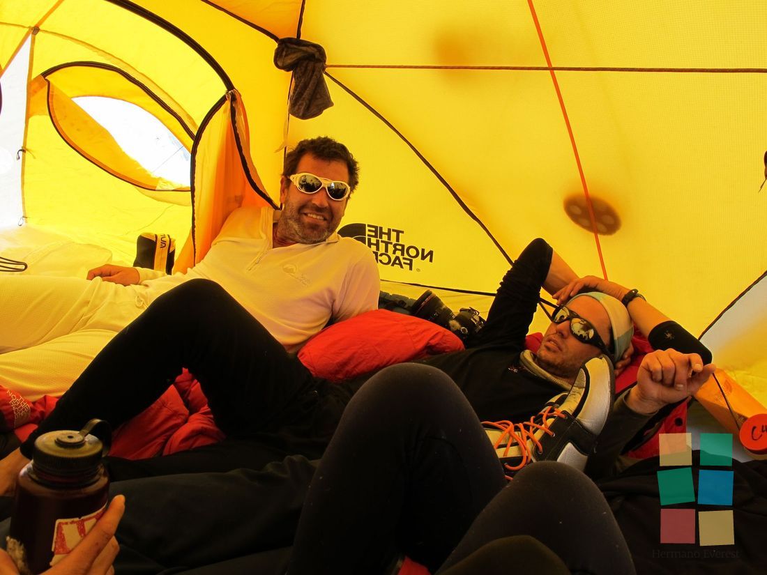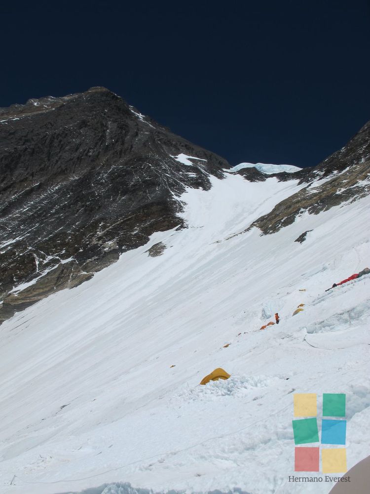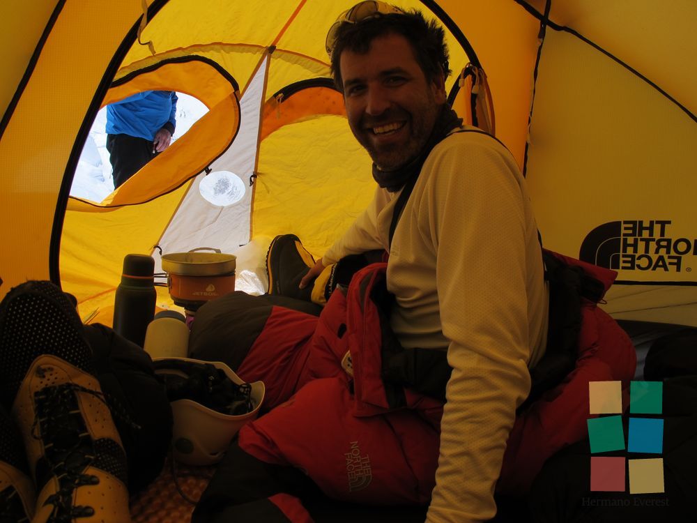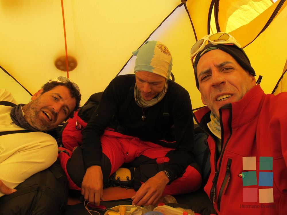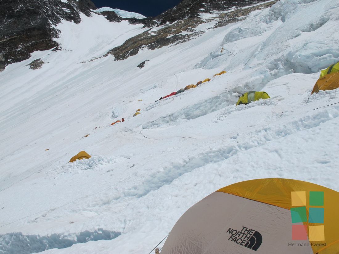 Hoy hay que llegar a Campo 3 y dormir allí, en una carpa apenas sujeta sobre la Cara del Lhotse, con su pendiente de más de mil metros de puro hielo. ¿Para quién escribe Fer? Cinco en una carpa para tres: la tarde discurrió entre chistes, risas y las típicas e irreproducibles charlas de varones. El equipo de oxígeno se torna necesario.