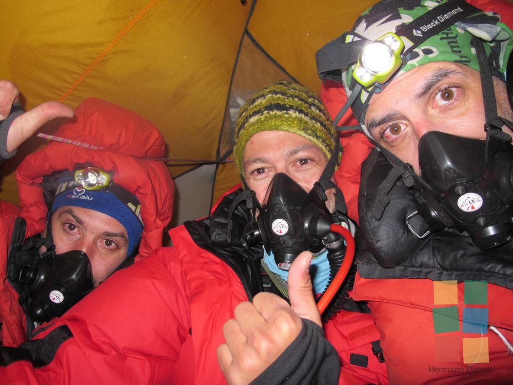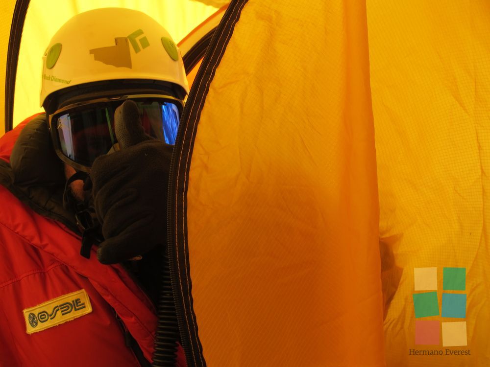 Hoy hay que llegar a Campo 3 y dormir allí, en una carpa apenas sujeta sobre la Cara del Lhotse, con su pendiente de más de mil metros de puro hielo. ¿Para quién escribe Fer? Cinco en una carpa para tres: la tarde discurrió entre chistes, risas y las típicas e irreproducibles charlas de varones. El equipo de oxígeno se torna necesario.