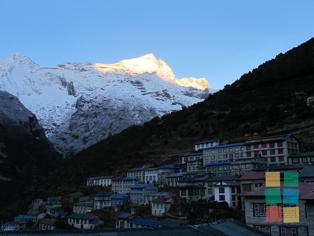 El trekking al Campo Base resulta sorprendente a cada paso. El balanceo de los puentes colgantes produce sensaciones encontradas: diversión, temor, fascinación... Namche Bazar recibe al grupo de un modo muy particular. ¡Otro día magnífico!