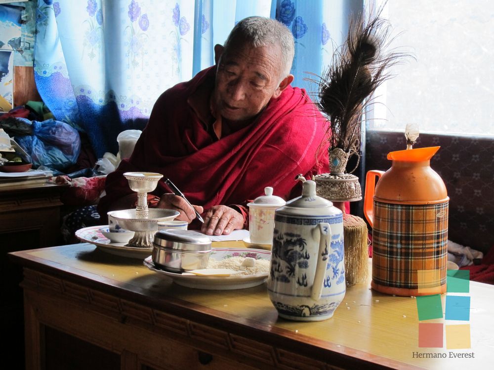 La Puja. Un rito milenario con profundo significado para los sherpas despierta el máximo interés del grupo. Todo el día gira en torno a esa celebración. Un nuevo paso hacia arriba.