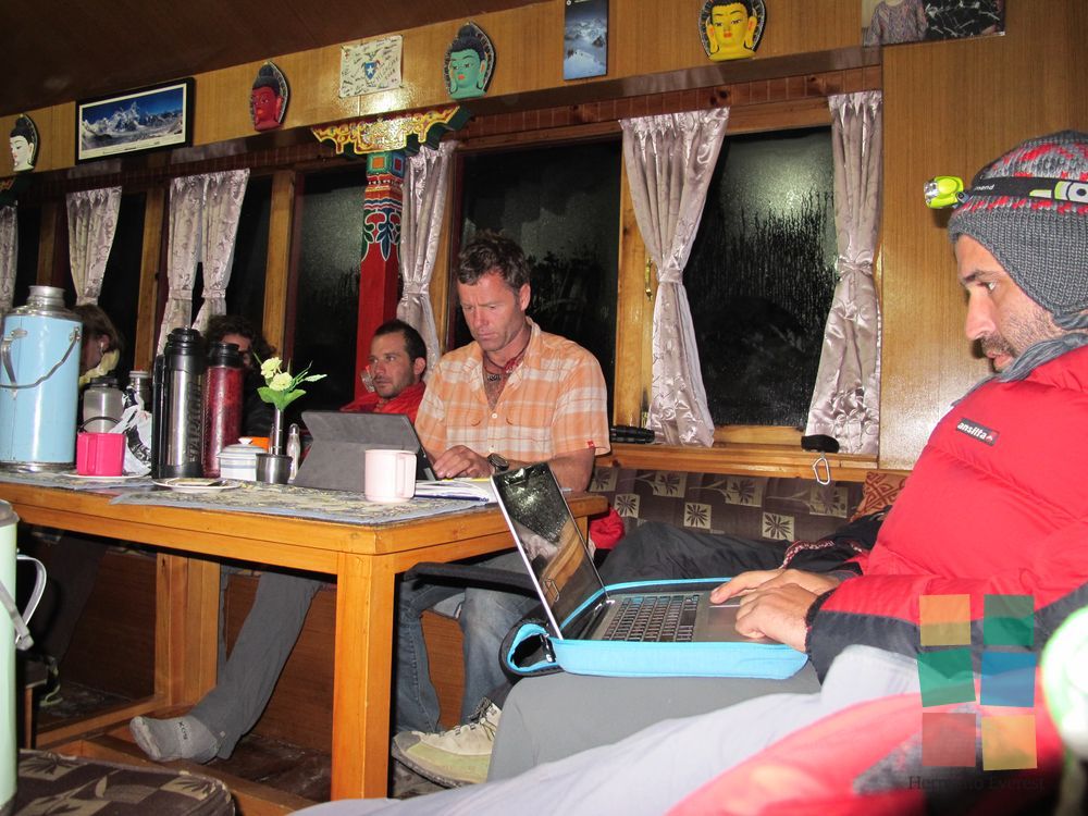 A seguir subiendo, aunque algunos deben quedarse para recuperarse de sus afecciones. El encuentro con un famoso escalador demanda foto obligatoria, y un memorial en homenaje a los muertos en Everest es motivo de otra parada y algunas historias. Al final del día, ya en Lobuche, una transmisión televisiva vía satélite pone en estado de estrés a dos miembros del grupo.
